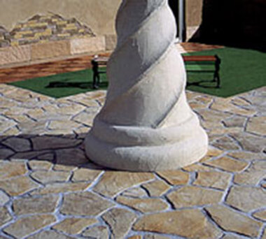 ファンシー床専用タイプ F-100(平板模様)・F-506(乱貼り模様)は、発泡スチロールの廃材を骨材に再利用したGRCで強化した軽量人工自然石です。型は自然石より型取りされており、自然な風化石に近いアンティークな雰囲気をかもしだします。用途に応じ様々なタイプが用意されています。
